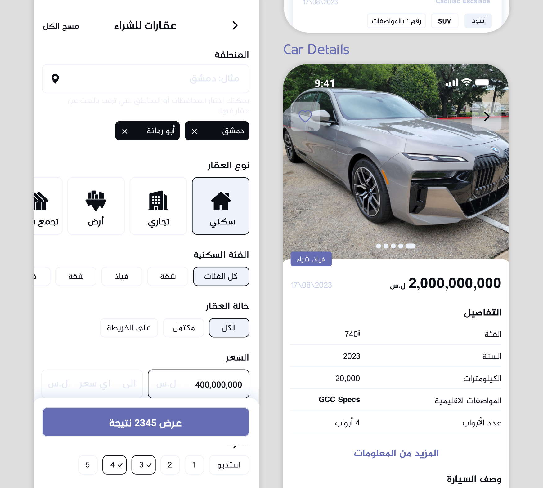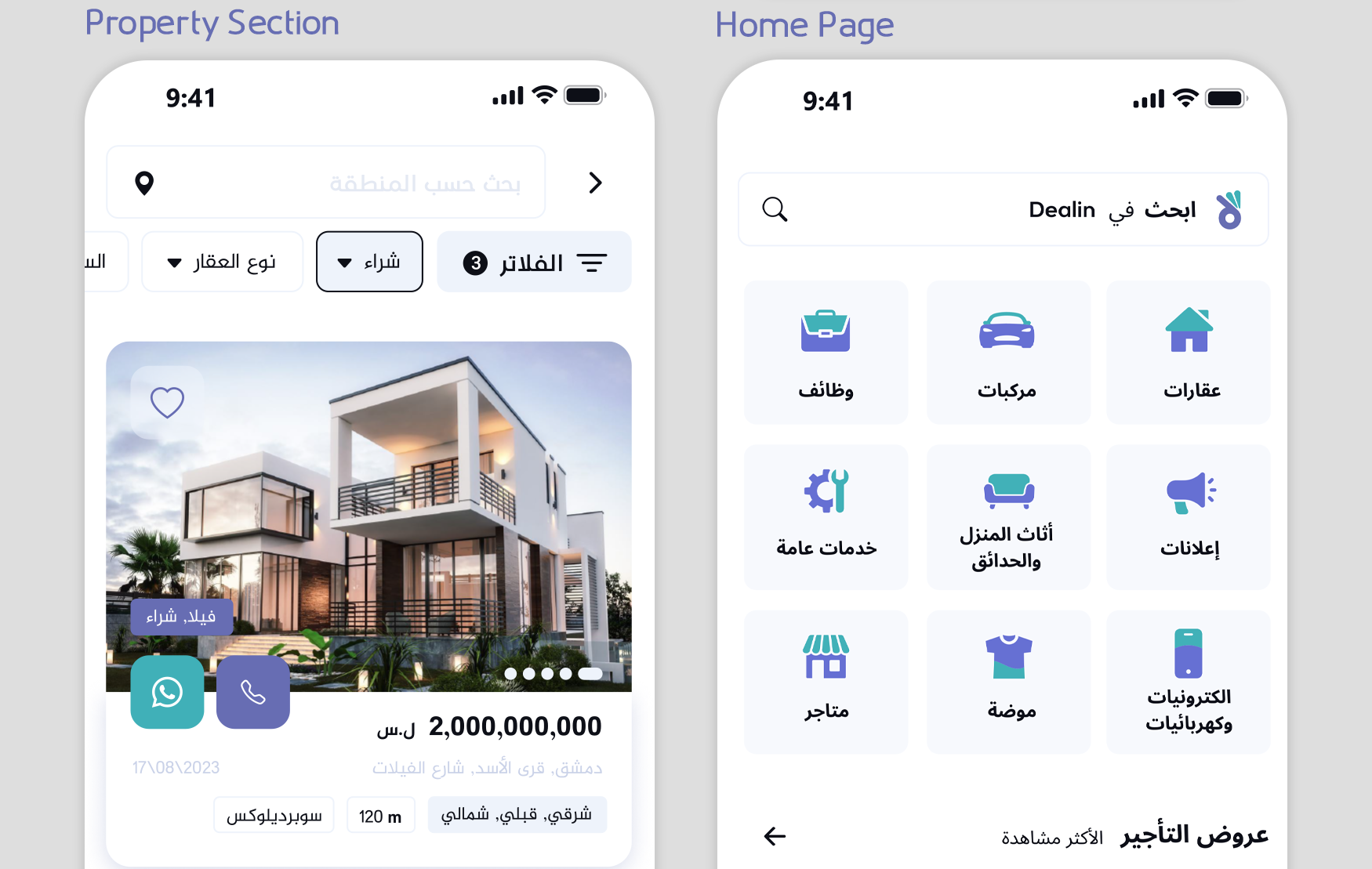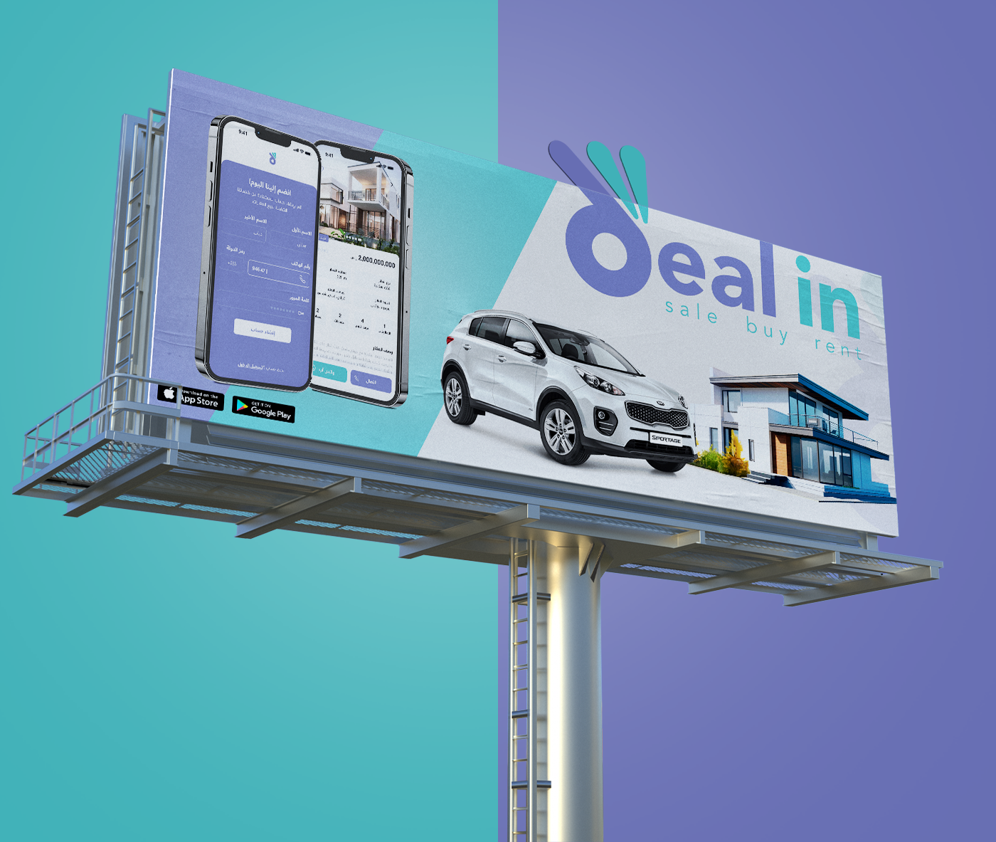 تصميم الهوية البصرية وواجهات تطبيق ديل إن المختص في بيع وشراء السيارات والبيوت